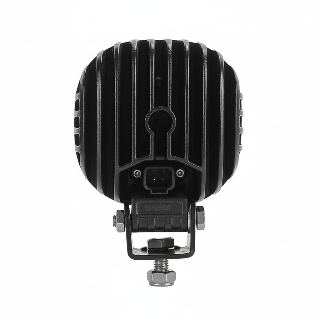 Housing is die-cast aluminium, designed to manage heat and protect the electronics over a 50,000-hour design life. The unit is IP68, so it’s sealed against dust and protected against prolonged immersion, making it suitable for plant, agri and off-road equipment that live outdoors and see regular washing. Inside, EMC performance is handled to a high standard: ECE R10 approved with CISPR 25 Class 4 radio frequency suppression, which means less risk of crackle on in-cab radios, GPS, or telematics when the lamp is on.