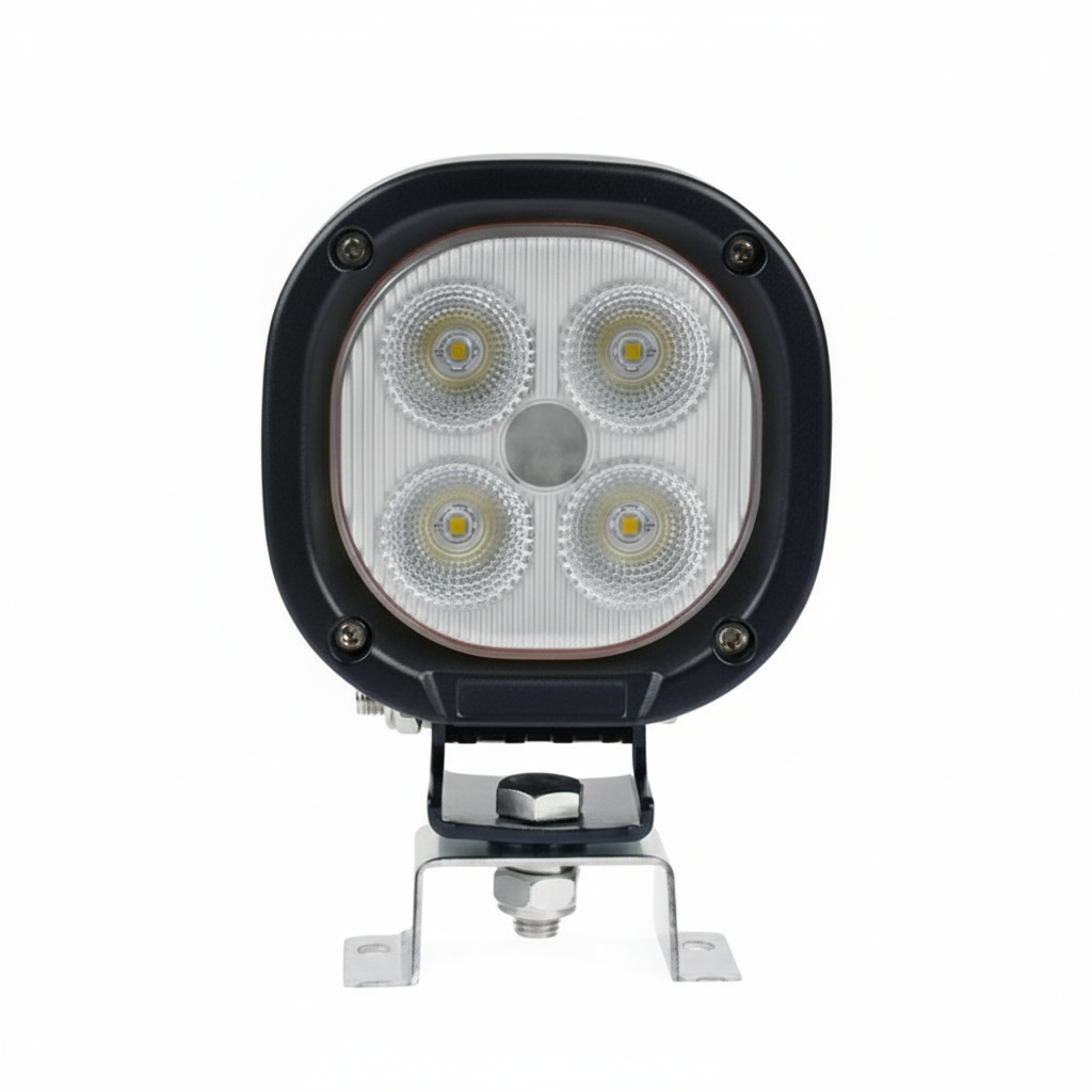 The LG843 is built for operators who need consistent, high-output light in all conditions. The 40W high-intensity CREE XTE LEDs produce a cold white 6000K beam, cutting through rain, dust and yard lighting to give clear definition on working areas, tools and hazards. At 50 metres you still have 12 lux, so it’s not just bright at the lamp face; you keep usable light well out in front of the machine.