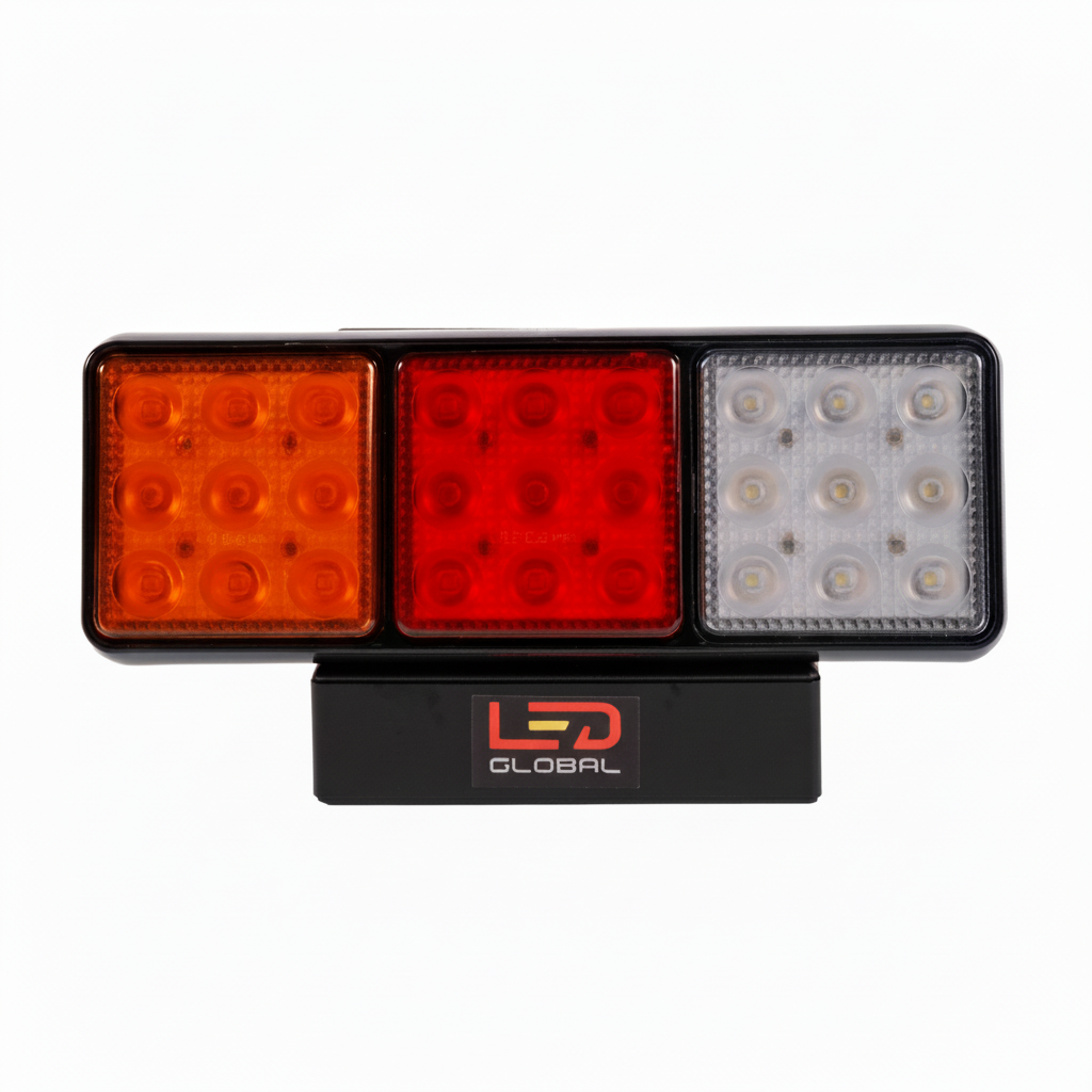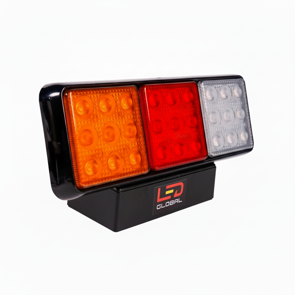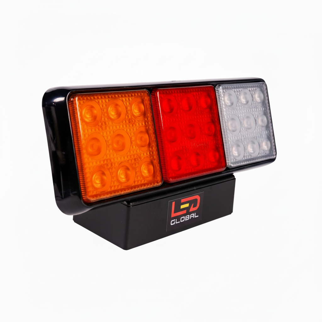 This 3 pod LED rear lamp is designed for one thing: dependable visibility at the back of the vehicle. Each of the three pods uses 9 high-output LEDs (27 LEDs in total) to give crisp, fast-on signalling for stop, tail, indicator and reverse functions. Drivers behind you see you sooner. That means fewer close calls in traffic, yards or depots.