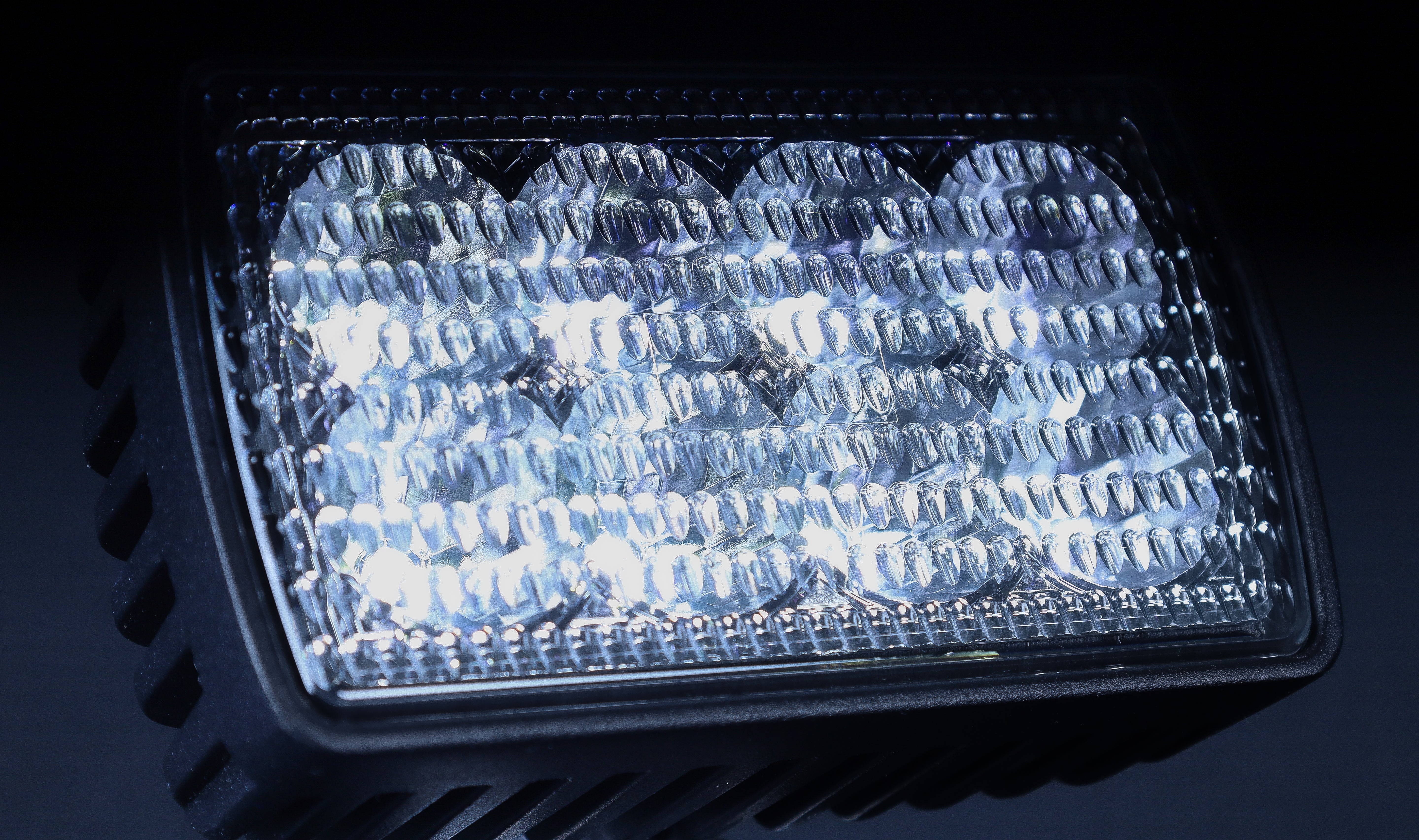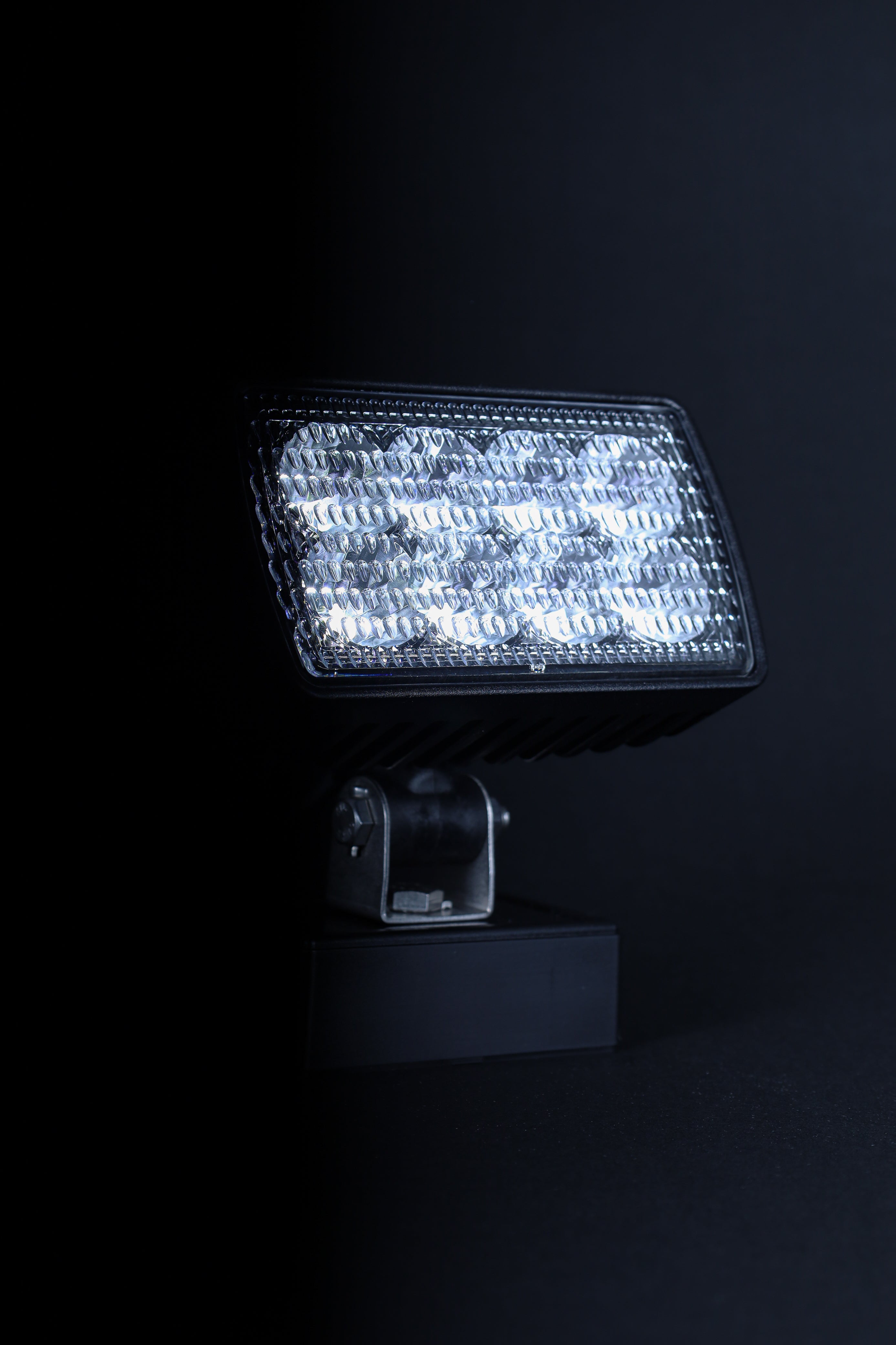 40 W LED rectangle adjustable-mount work light (LG852) — compact rectangular flood-beam lamp designed for agricultural and industrial machinery, featuring a fully adjustable mounting bracket for flexible installation.