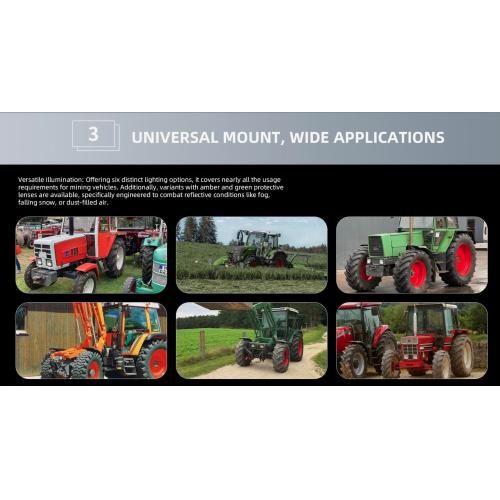Compatible With Suitable for universal applications on agricultural and industrial machinery requiring standard rectangular mount headlights.