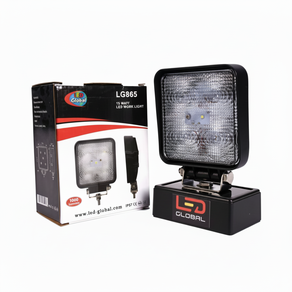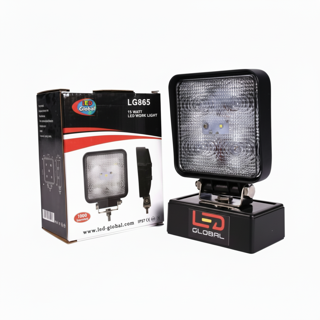 The 15 Watt LED square work light LG865 is a compact, high-output unit built for demanding professional use on agricultural, construction and utility vehicles. Its 9 Osram LEDs deliver a strong 2,200 lumen flood beam, giving clear, even light where you need it most. Approved to ECE R10 (EMC) and CE, it’s designed to work reliably around sensitive vehicle electronics.