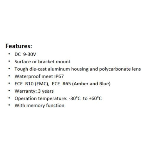 - ECE R65 approved – meets European requirements for amber warning performance and intensity for on-road and off-road use.