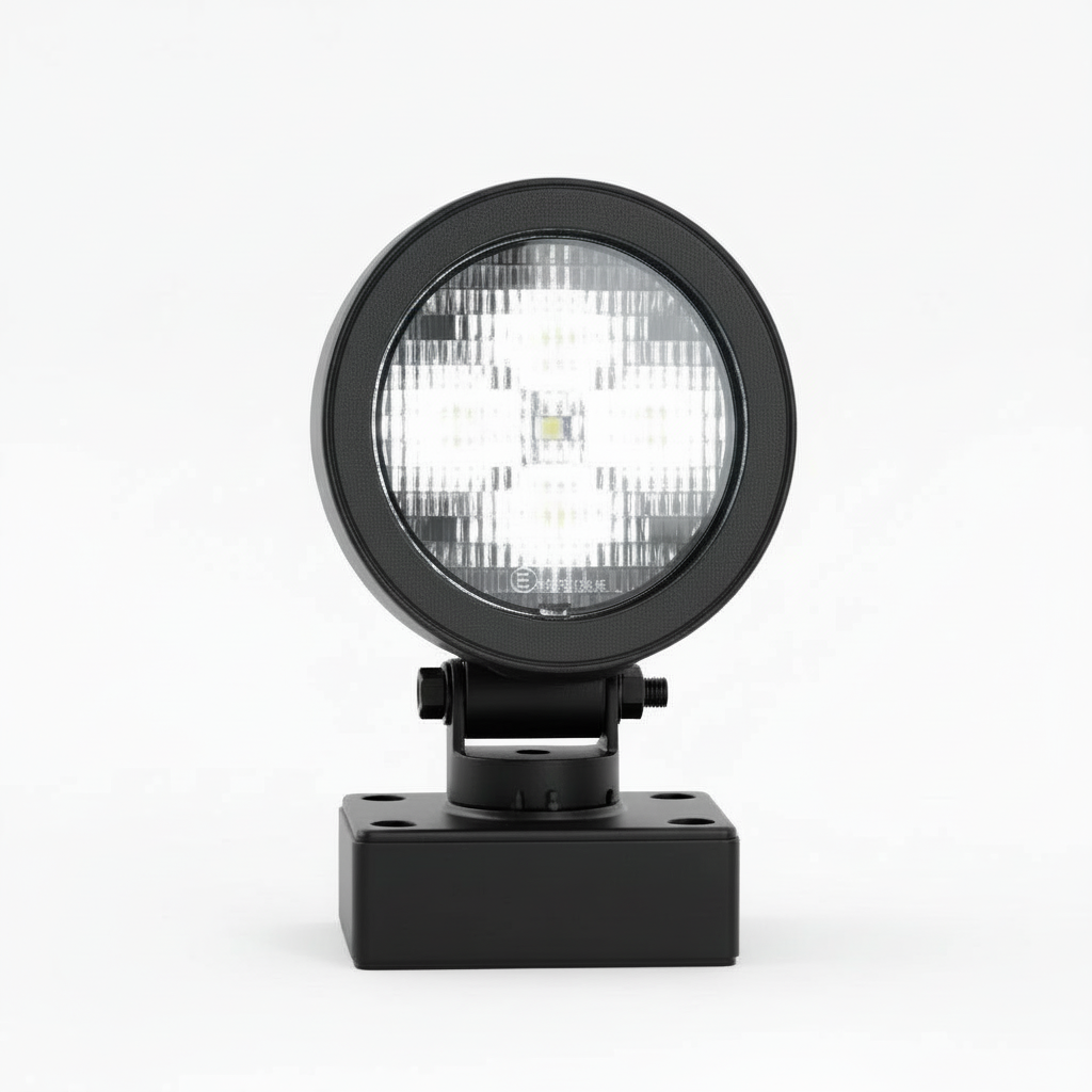 Electrically, this lamp is built for modern mixed fleets. It runs on 9–32 V DC, so it suits 12 V and 24 V systems across tractors, telehandlers, construction kit and service vehicles. With ECE R10 approval and CISPR 25 Class 4 EMC performance, it is designed to sit right beside sensitive electronics without causing nuisance interference. The IP68 ingress protection rating means the unit is sealed against dust and can withstand prolonged immersion, so heavy rain, washdowns and slurry splashes are not an issue in normal operation.