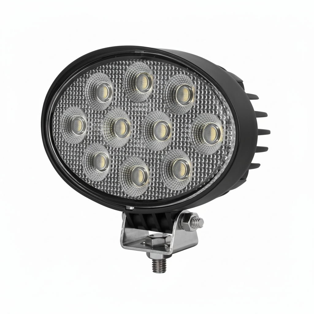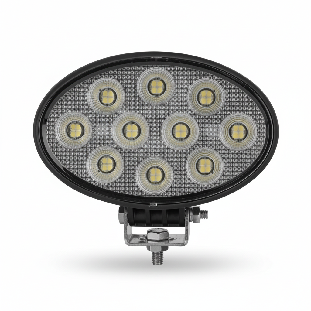 40 Watt Ovaler Flut-LED-Arbeitsleuchte - LG970 ist eine kompakte, leistungsstarke Arbeitsleuchte, die für 12 V und 24 V Fahrzeuge und Geräte entwickelt wurde. Ausgestattet mit 10 leistungsstarken LEDs und einem breiten Flutstrahl bietet sie eine breite, nutzbare Beleuchtung für Arbeitsbereiche in unmittelbarer Nähe wie Höfe, Ladezonen und rund um Maschinen. Das robuste Gehäuse aus Druckguss-Aluminium ist für anspruchsvolle Umgebungen konzipiert, während das versiegelte Design den Einsatz bei nassen und staubigen Bedingungen unterstützt.