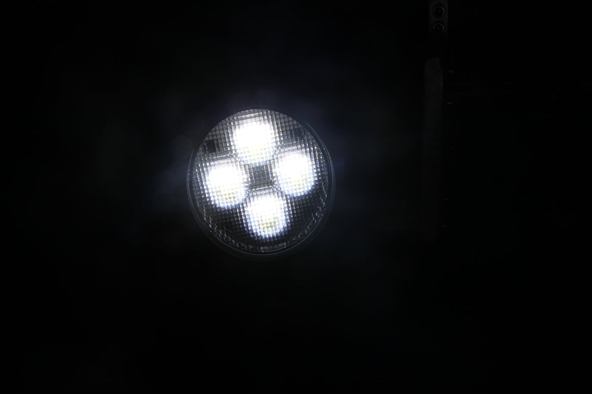 This 40 W round LED work light delivers a true 4,000 lm output for clear, even illumination around the machine. Built for professional agricultural and construction use, it runs on 9–32 V DC, suits 12 V and 24 V systems, and is IP69K-rated for high-pressure, high-temperature washdowns. Approved to ECE R10, CE, RoHS and EMC CISPR Class 4, it’s a robust, low-interference upgrade to ageing halogen or weak OEM lamps.