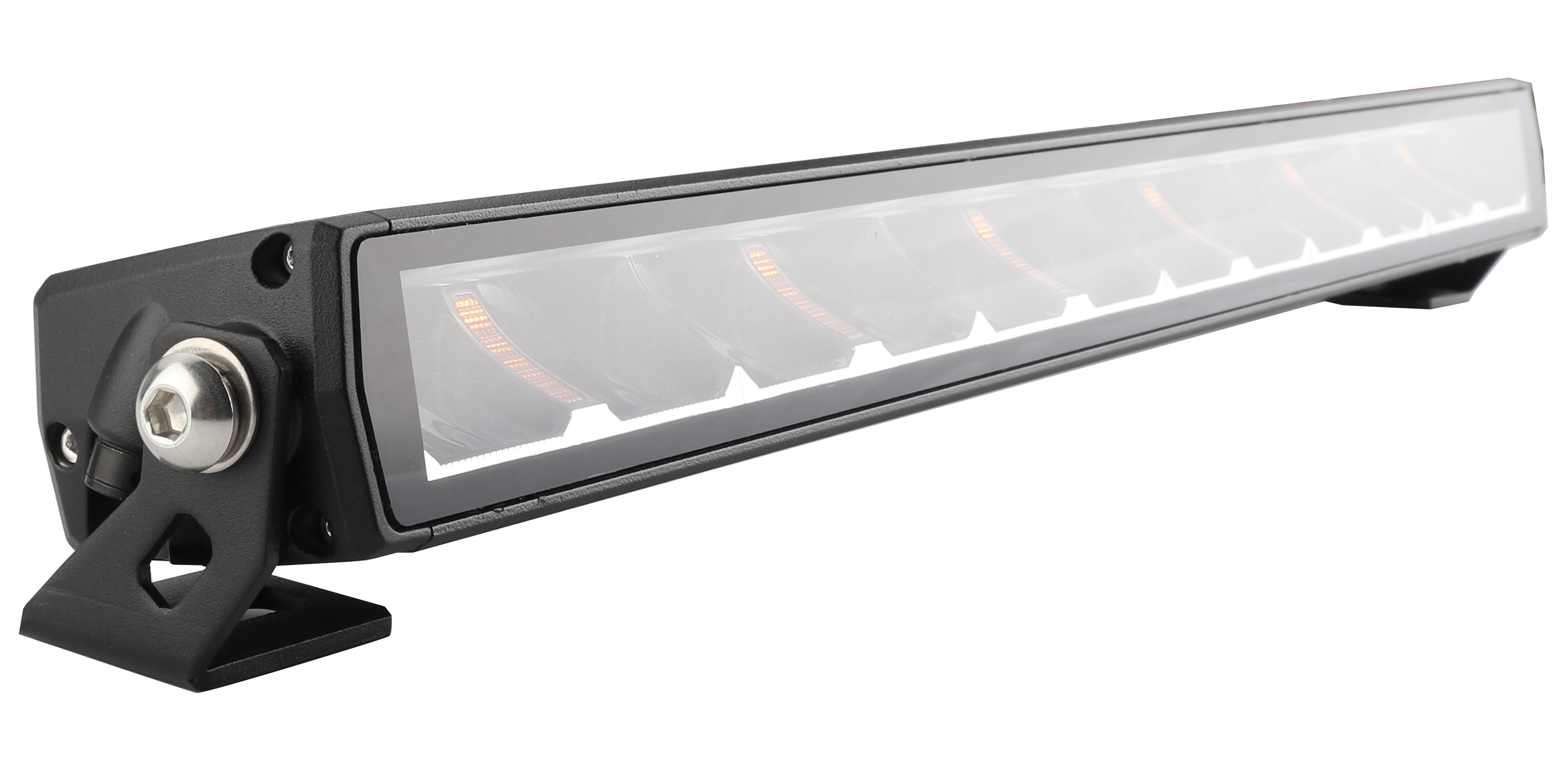 20″ (508 mm) single-row driving bar featuring dual-colour position light (White / Amber) and a powerful 96 W main beam. Built with an aluminium heatsink, polycarbonate lens, and full ECE approval for reliable road and off-road use.