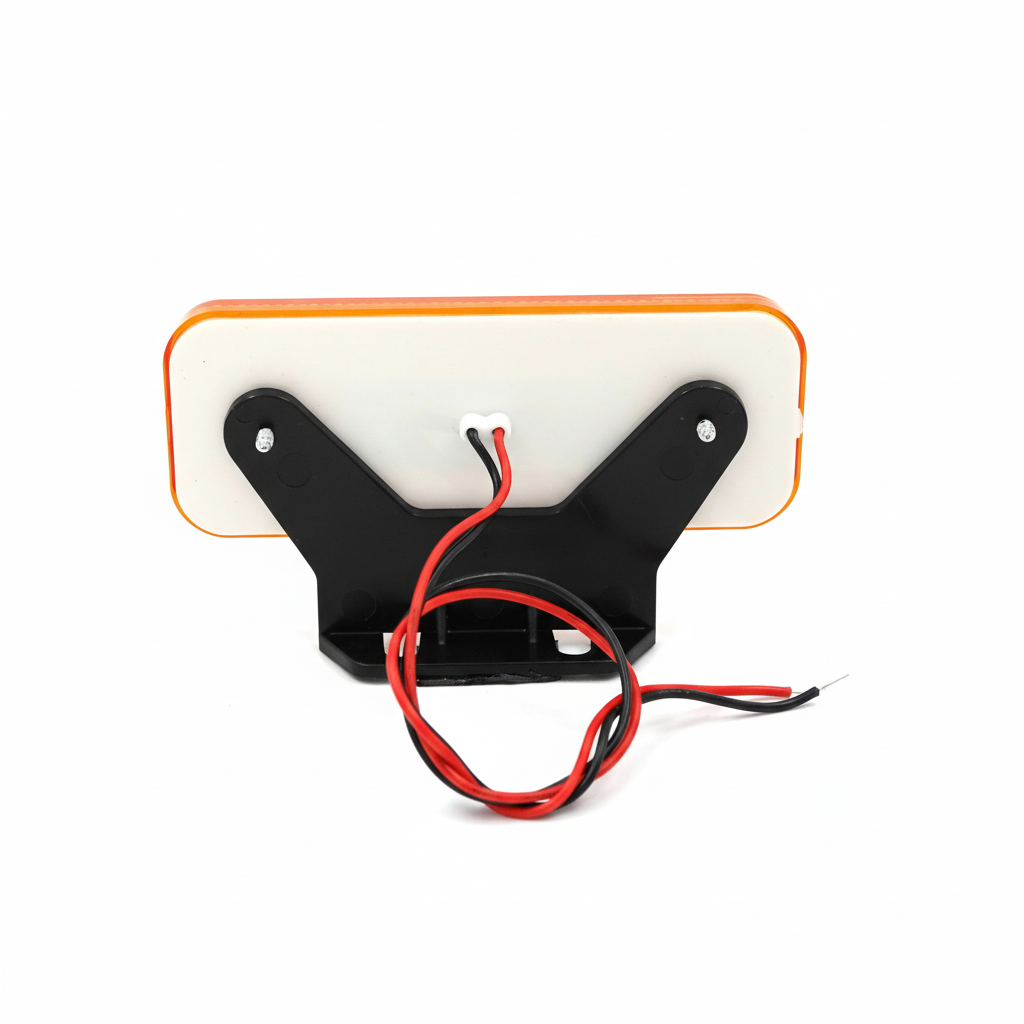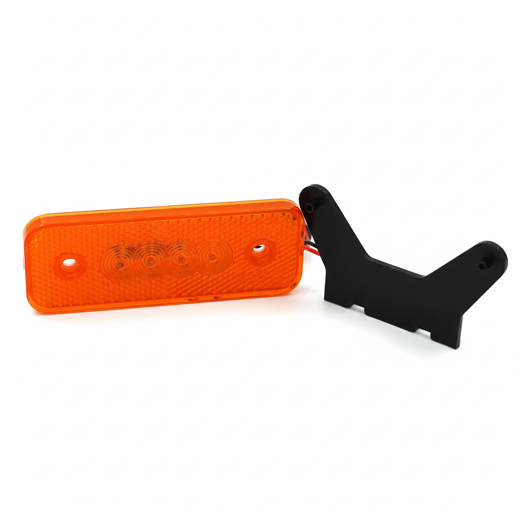 Lieferumfang: 1x LG098 rechteckige bernsteinfarbene Markierungsleuchte mit abnehmbarem Halter und vorkonfektioniertem Kabel.