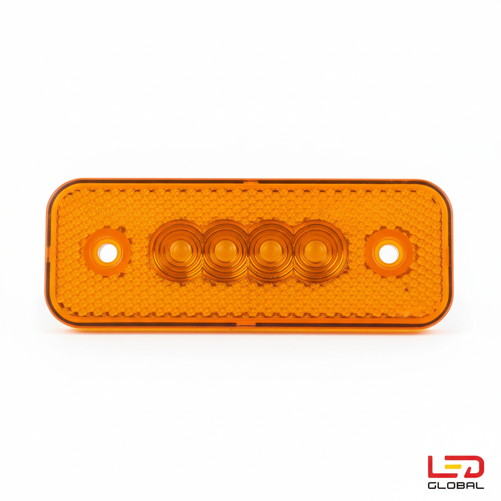 LED-Rechteck-Markierungsleuchte Bernstein - LG098 ist eine kompakte LED-Seitenmarkierungs- / Positionsleuchte, die entwickelt wurde, um die Fahrzeugkontur-Sichtbarkeit bei Lastwagen, Anhängern, Landmaschinen und Baumaschinen zu verbessern. Sie ist mit einem robusten Kunststoffgehäuse und einer widerstandsfähigen PC (Polycarbonat)-Linse ausgestattet und eignet sich für anspruchsvolle Straßen- und Geländeeinsätze.