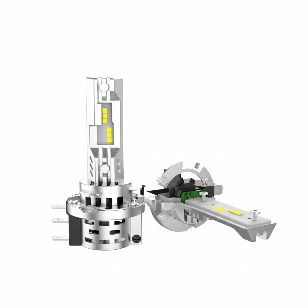 LED-Lampe Typ H15 (Paar) - LG5023 ist ein Plug-and-Play H15 LED-Scheinwerfer-Upgrade, das als direkter Ersatz für Standard-H15-Halogenlampen entwickelt wurde. Mit einer 1:1 Halogen-äquivalenten Geometrie hilft es, das vorgesehene Lichtmuster in Ihrem vorhandenen Reflektor oder Projektor beizubehalten und liefert gleichzeitig ein sauberes, weißes Licht mit verbesserter Sichtbarkeit und Reichweite. Das H15-Format unterstützt sowohl Fern- als auch Abblendlichtfunktionen in einer kompakten Lampe, sodass Sie den vollen Scheinwerferbetrieb beibehalten.