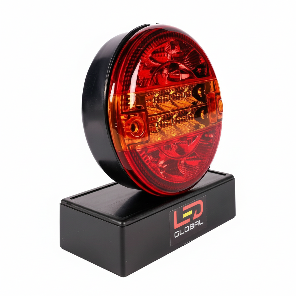 - Construction and utility trailers that require durable, multi-voltage rear lighting.