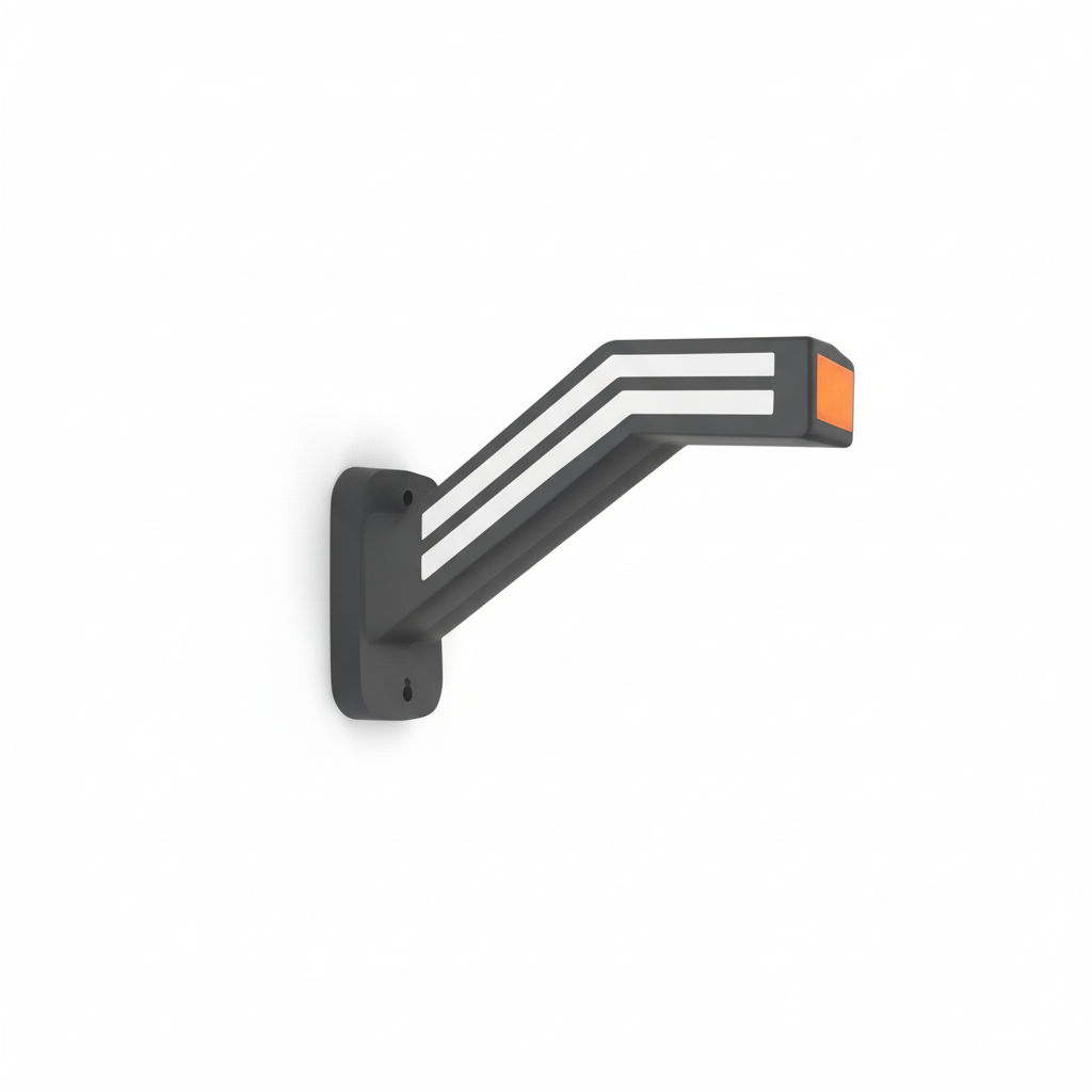 Left-hand LED stalk marker light with dynamic indicator, engineered for trucks, trailers and heavy equipment that need clear position lighting and a highly visible turn signal on the side. This multi-function lamp gives front, rear and side marker light plus an amber sweeping indicator, all from one compact stalk. ECE approved and IP67 rated, it’s built for European roads and harsh working conditions.