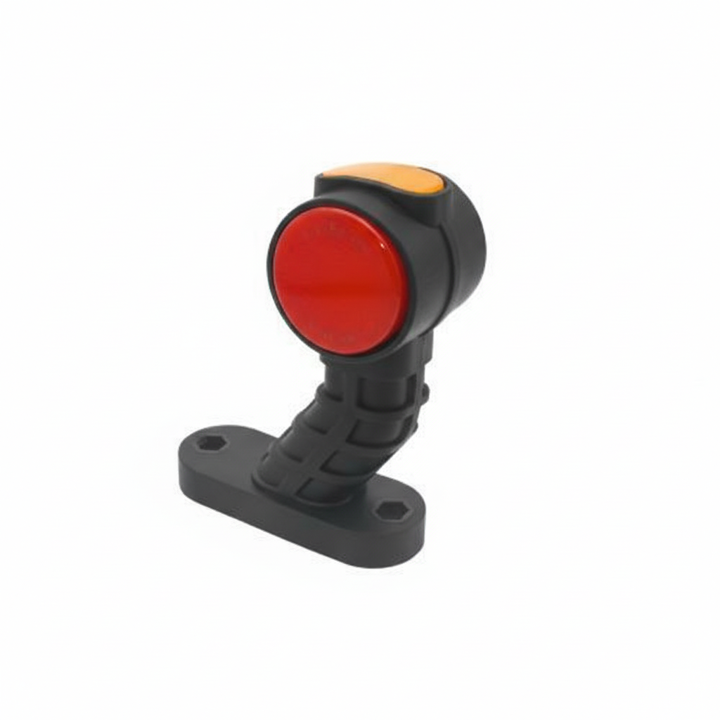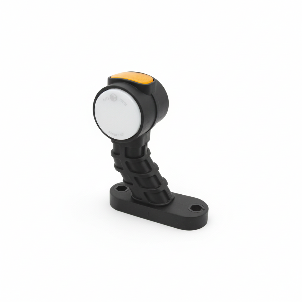 This right-hand LED stalk marker light is built for clear signalling on trailers, plant and commercial vehicles that work long hours and hard days. It combines front, rear and side marker functions in one compact unit, with ECE and EMC R10 approvals for road use and electrical safety. Run it on 12 V or 24 V systems (10–30 V DC) and expect stable light output in tough European weather.
