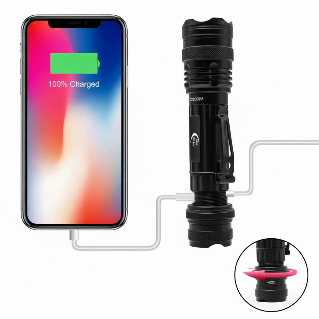 - Integrated power bank functionality to recharge phones or small USB devices in an emergency or during long shifts